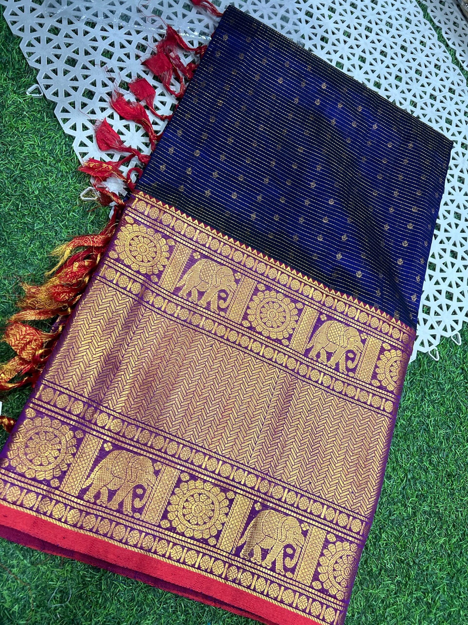 Blue Mangalagiri pattu saree with vintage kanchi border